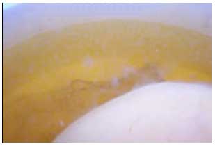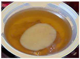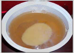 + H2O På samme tid opbygger eddikesyrebakterierne deres slimede formationer omkring Kombuchakulturen. De spalter sukkeret i cellulose og medvirker til, at membranen, som dækker Kombuchakulturen, efterhånden vokser. På samme tid gærer de alkoholen, som produceres af gærcellerne, til eddikesyre og de andre organiske syrer. Dette er en iltningsproces, som kan beskrives med følgende formel: C2H5OH + O2 Syringen af den sødede te sker således på grund af mikroorganismernes stofskifteproces i Kombucha kulturen. Hastigheden på syringen afhænger af, hvor gunstige vilkår der gives, for at få disse organismer til at arbejde sammen. De afgørende faktorer, som kan komme på tale, er: sammensætningen af den symbiotiske kultur (ifølge Dinslage og Ludorff, 1927, er den ikke altid den samme; vilkårene er nogle gange mere favorable for én slags gærceller, nogle gange for andre, og andre gange igen for eddikesyrebakterier); størrelse og form på gæringsbeholderen, og i særdeleshed hvor meget plads kulturen har til at udfolde sig på, ud til siderne; omfanget af iltens tilgængelighed; sammensætningen af luften (forurening?); kvaliteten af vandet; hvilken te der anvendes; hvor meget sukker der anvendes og hvilken slags! Og vigtigst af alt, temperaturen. På grund af de forskellige faktorer, vil syringsprocessen ikke altid forløbe på samme måde. I løbet af gæringsprocessen vil drikken afgive en behagelig, skarp aromatisk lugt. Farven bliver lysere på grund af den forøgede syring. Ved formeringen af gærcellerne vil drikken blive en smule grumset. Små skummende luftbobler udvikler sig her og der. Dette har at gøre med kulstoffets opsplitning til kulsyre og som et resultat af fugtigheden i teen. Det sker også af og til, at en kulsyreboble bliver fanget under skindet på væskeoverfladen og løfter dette pletvist, således at resten af skindet hænger ned som et gardin hele vejen rundt og giver Kombucha kulturen et udseende som en vandmand."